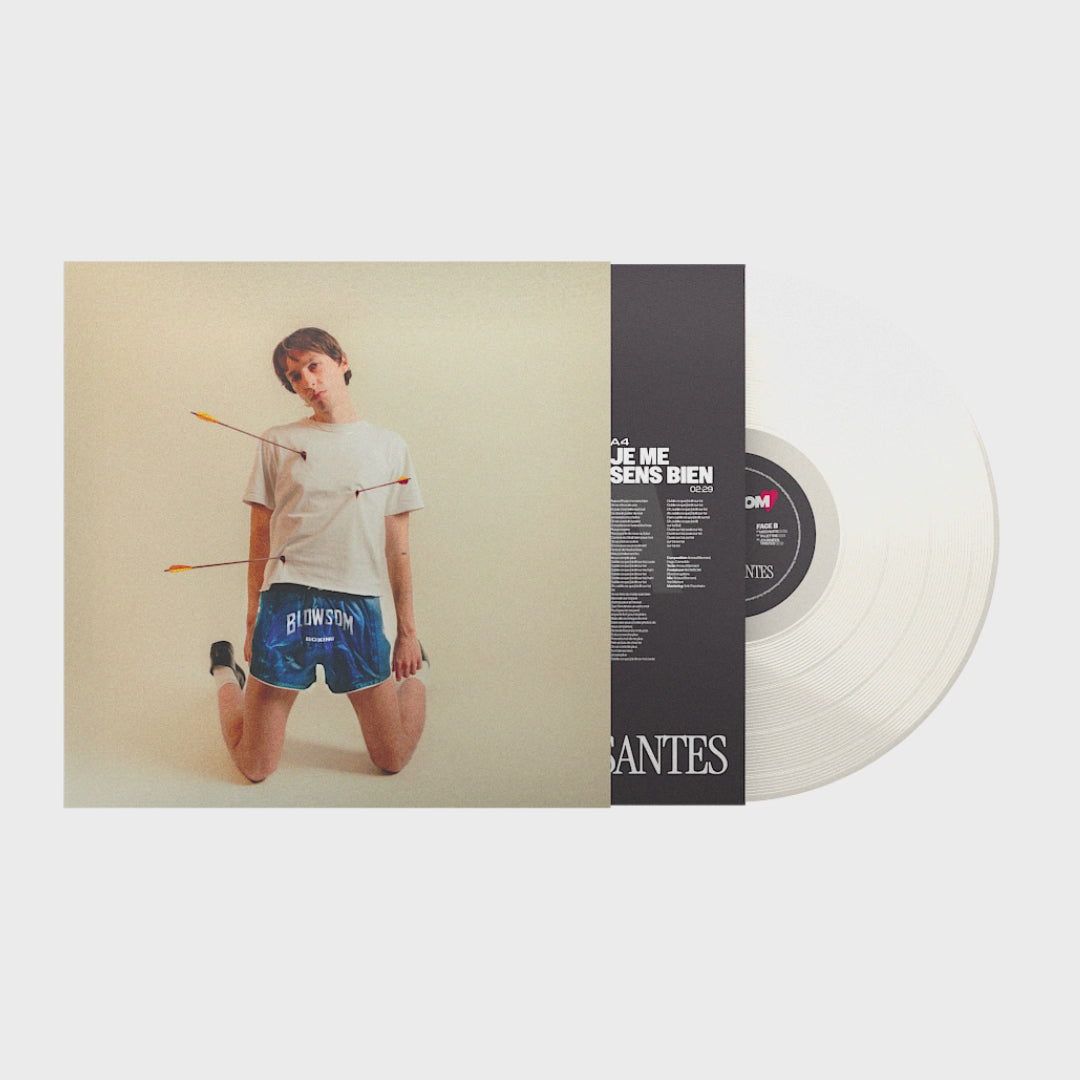 Vinyle blanc crème, 33 tours, sous pochette imprimée.